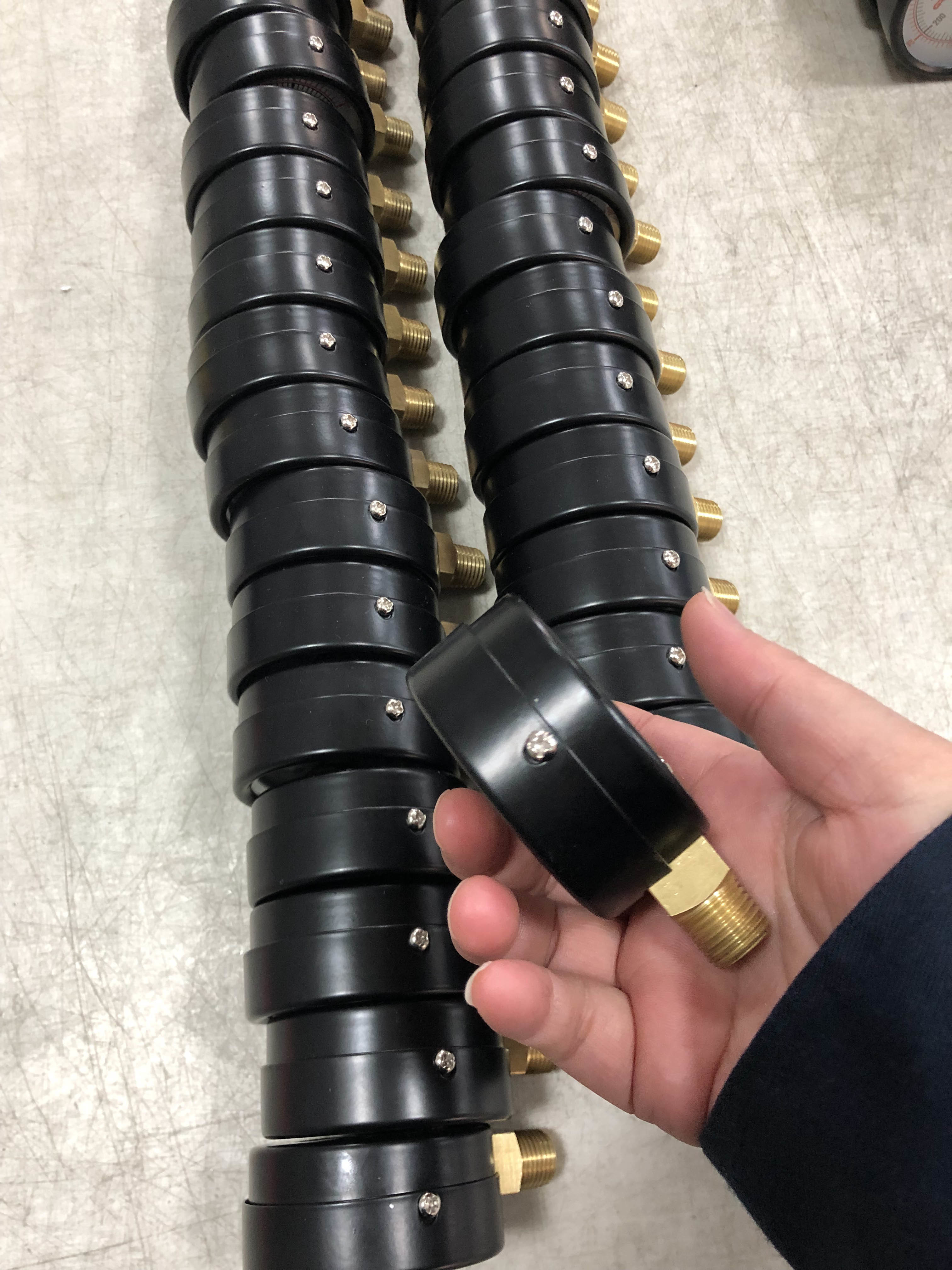 • Rugged Construction: Black steel case protects internal components; brass connection resists corrosion.